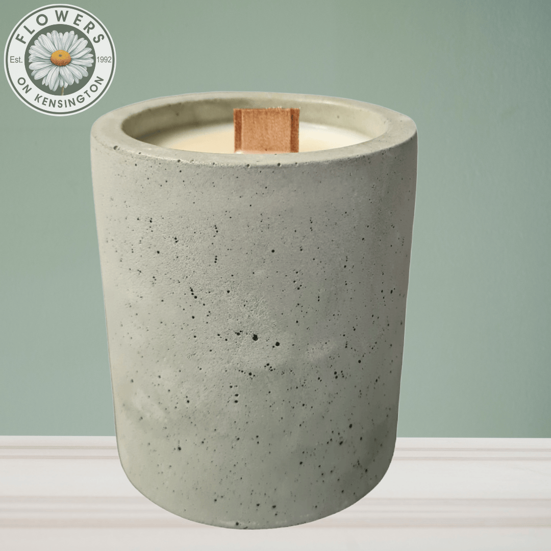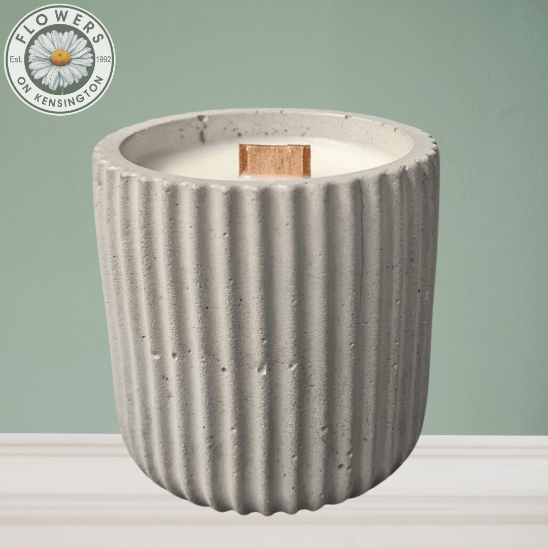 These cement vessels are handmade in small batches. For this reason, each and every vessel is entirely unique. Our ribbed Trixie cement vessel is +/- 170g capacity. Our Florence cement vessel is +/- 230g capacity. Filled with soy candle and bamboo wick. Scent is Vanilla.