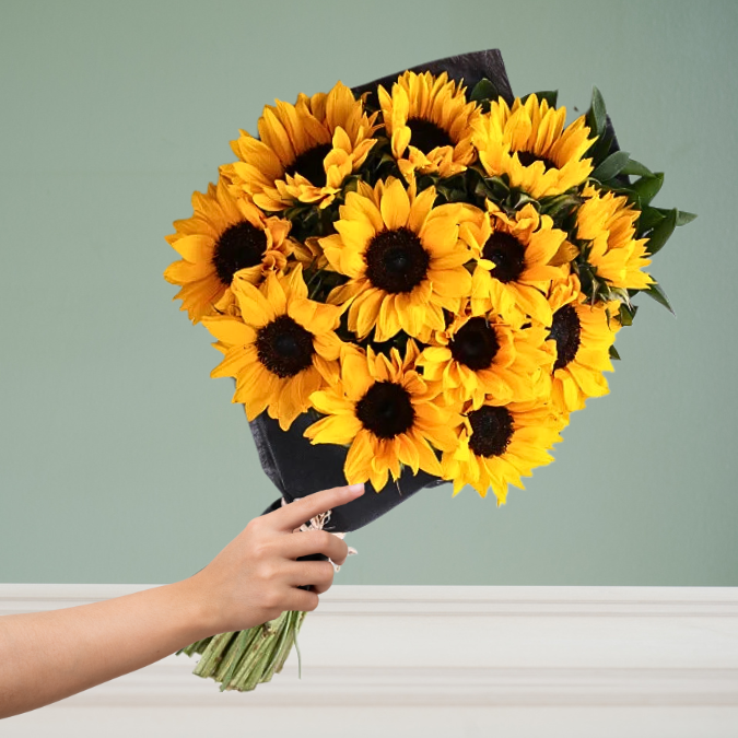 Brighten any day with our stunning bouquet of big sunflowers. Each bloom radiates warmth and joy with its bold, golden petals and vibrant center. Perfect for celebrating special moments or simply adding a cheerful touch to any space, this bouquet is a delightful way to bring sunshine indoors. Its striking beauty and lively presence make it an unforgettable gift or a charming addition to your home decor.